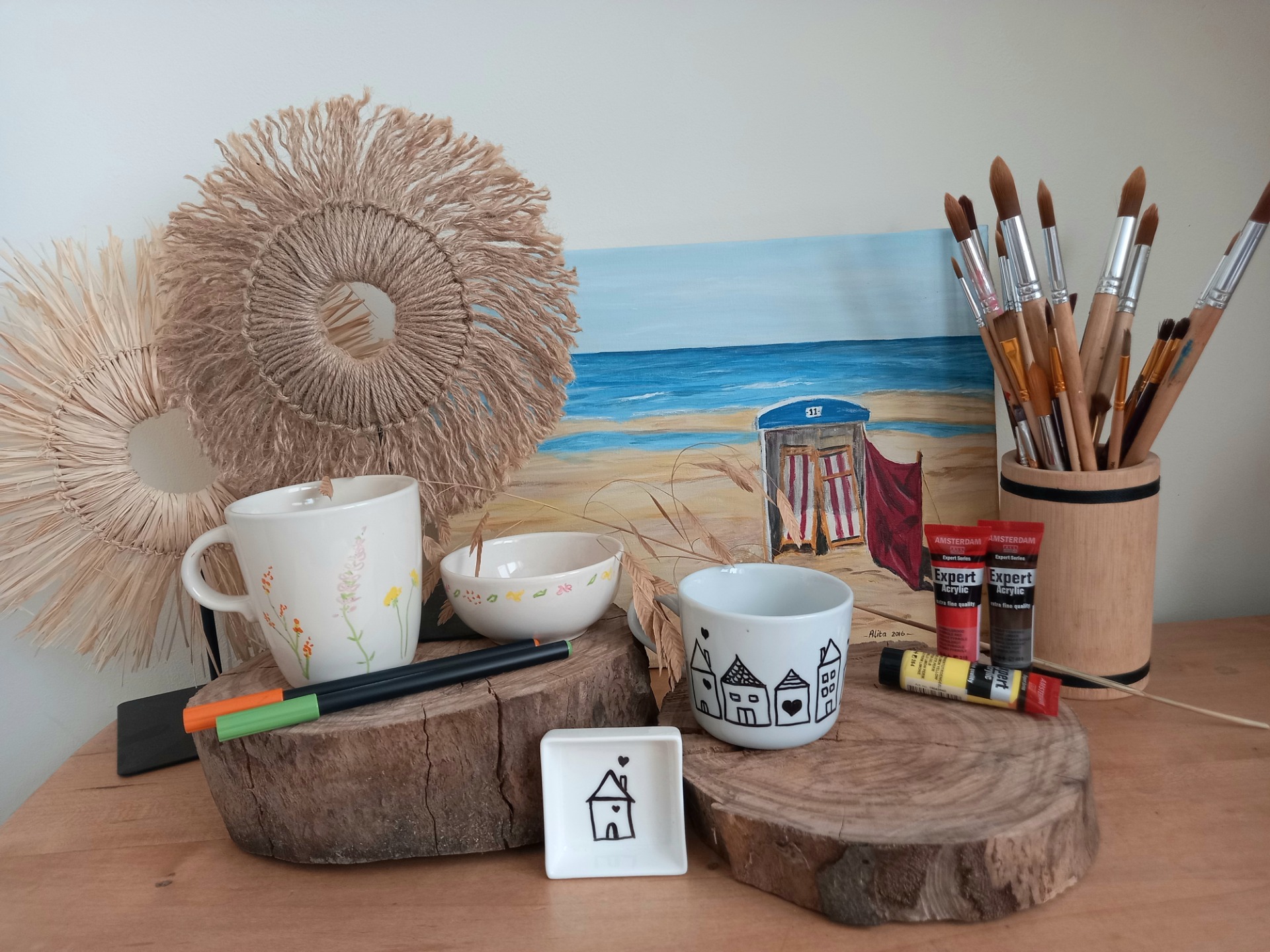 Met je collega's, zussen of vriendinnen op pad en creatief bezig zijn? Tot ongeveer vijf personen kan dat in mijn eigen atelier. Bij meer personen op een locatie.