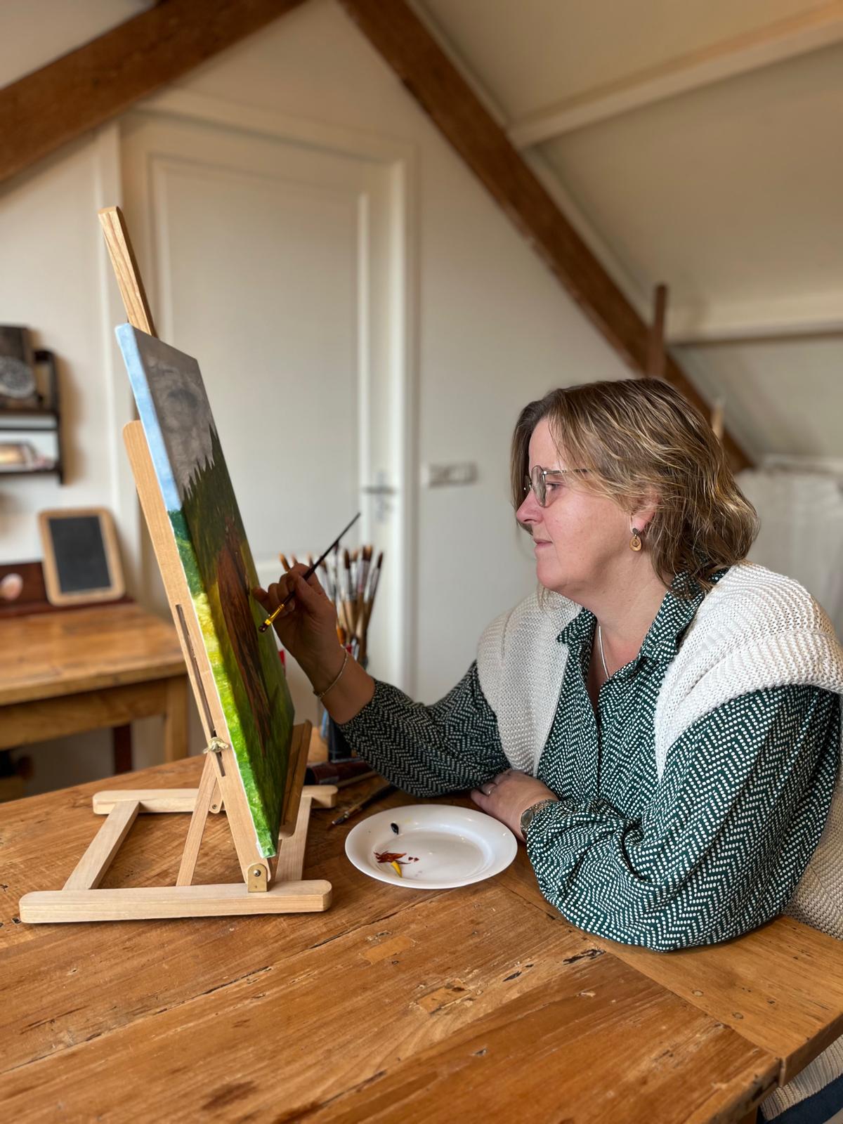 Begin jaren 90 begon ik met een cursus aquarelleren, later ging ik over op acrylverf. Ik schilder graag dieren en vind het leuk om op bijzondere ondergronden te schilderen, zoals een oude plank of iets van metaal.